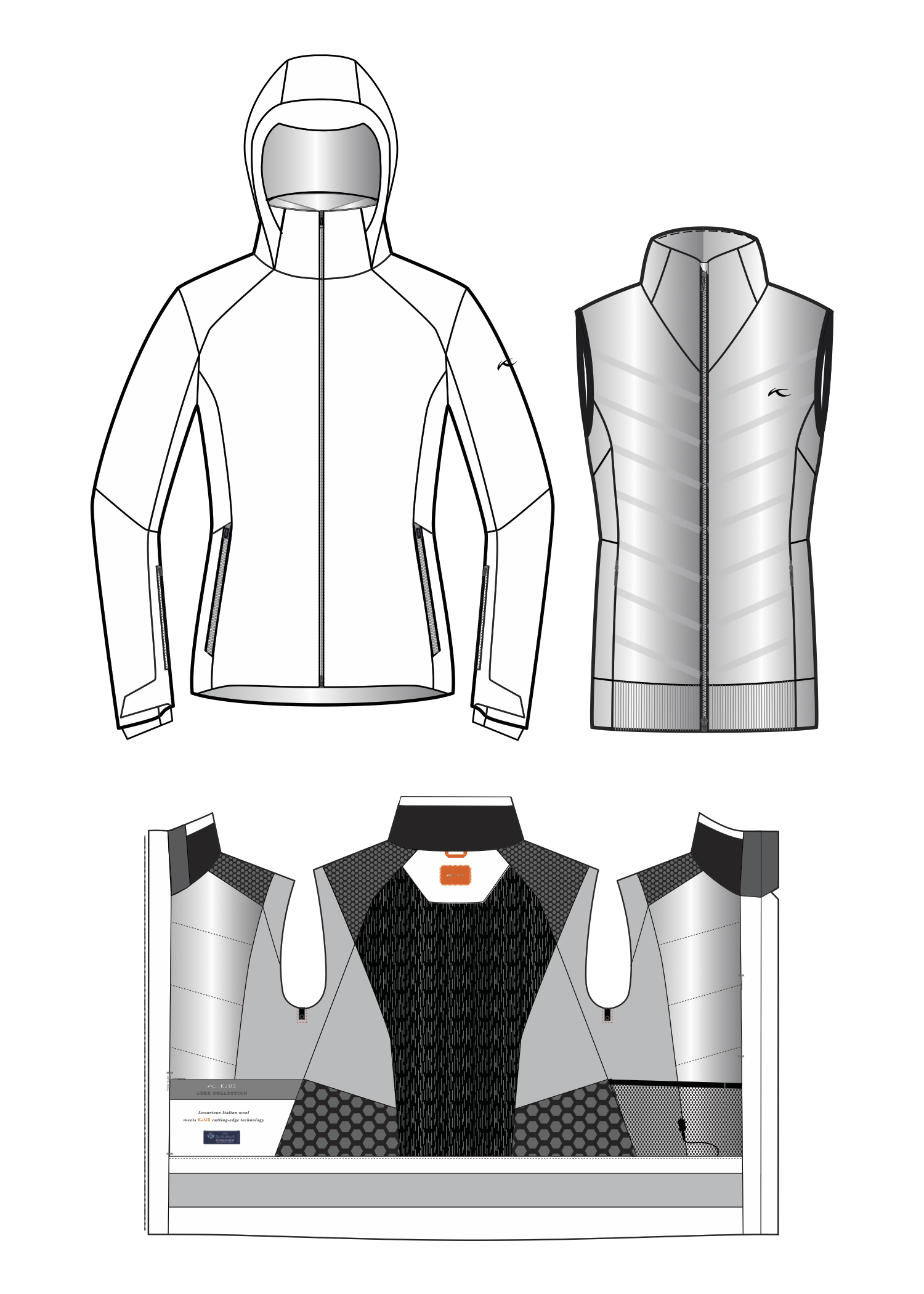 This 3-in-1 design from the KJUS Orange Label, combines alpine performance with elevated luxury. Crafted with Italian Loro Piana wool, a removable goose-down vest, and refined detailing, the jacket delivers exceptional warmth while maintaining a slim, modern profile. Technical ski fabrics and signature KJUS technologies are seamlessly integrated, allowing the piece to perform at a cutting-edge level without compromising sophistication. Designed for versatility, the Solstice moves effortlessly between high-performance outerwear and luxury winter layering.