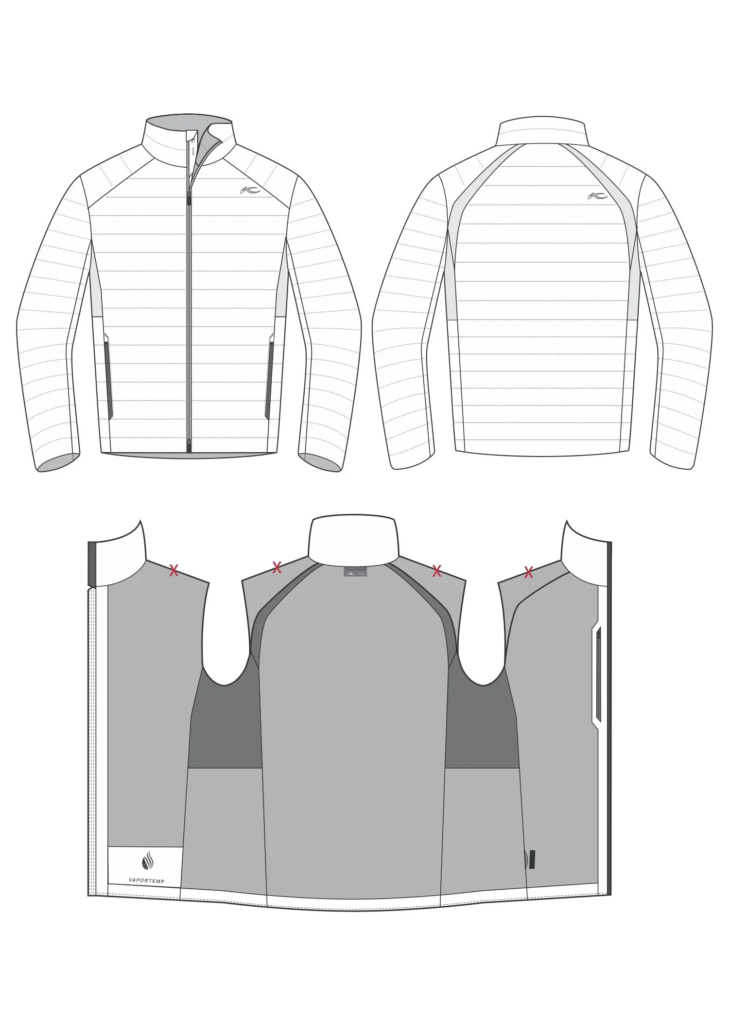 Sporty, lightweight Jackets and Vests with 650 FP recycled down insulation chambers. all pieces feature VaporTemp lining for thermoregulation. Stretch inserts make it ideal for winter activities.